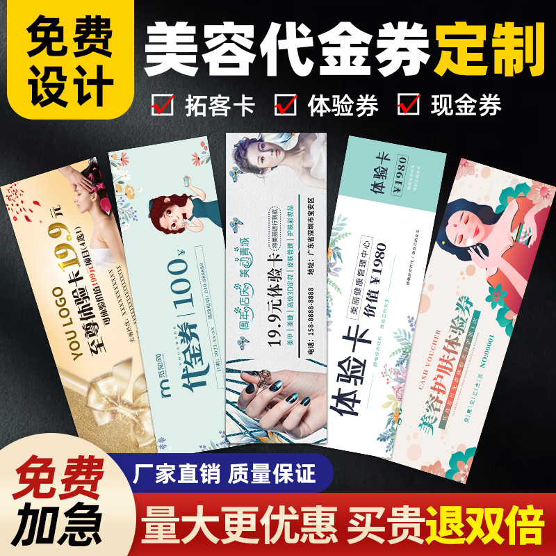美容院拓客体验卡片订做名片代金优惠券制作免费设计定制双面印刷纹绣