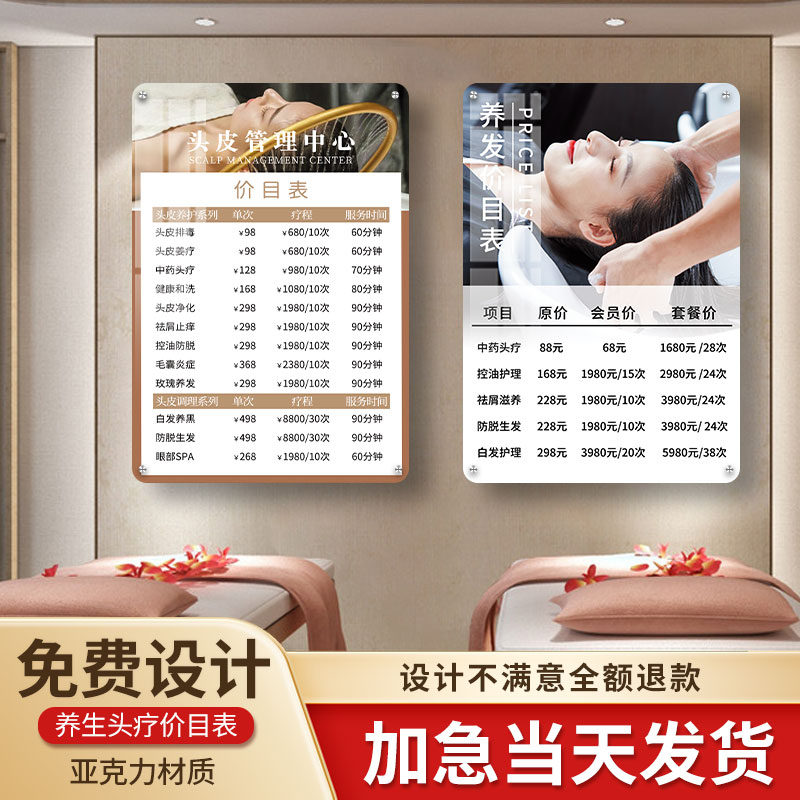 美容养生馆价目表定做,免费设计