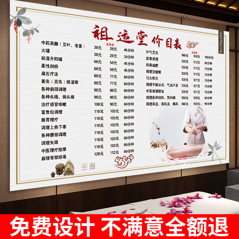 养生馆价目表定制中医足疗推拿挂墙美容院价格表设计制作广告贴纸