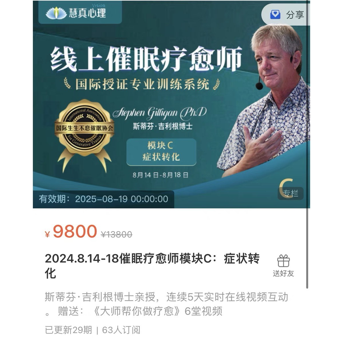 斯蒂芬吉利根博士2025年四大模块联报高级催眠疗愈师专业训练课程