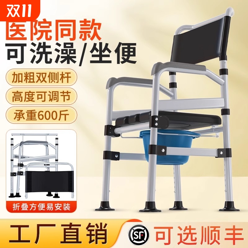 带轮坐便椅老人专用洗澡椅家用结实厕所凳子瘫痪病人卫生间坐便器