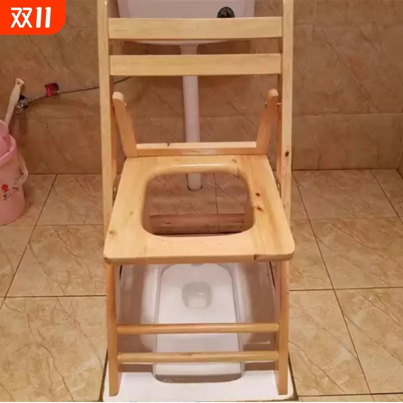 折叠实木坐便椅老人孕妇坐便器厕所凳病人大便座椅木质坐便凳家用