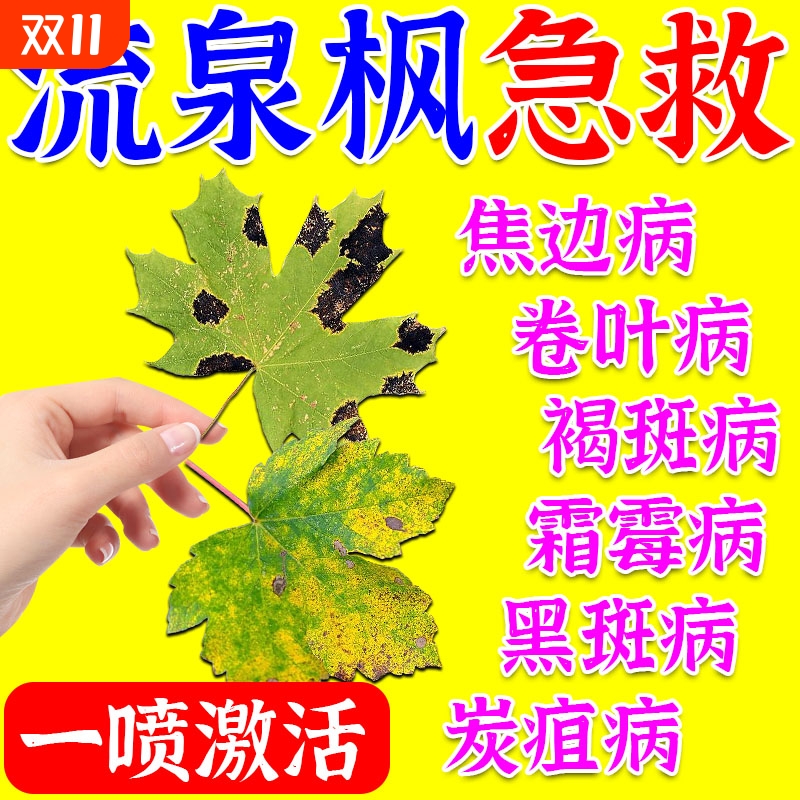 流泉枫营养液植物树叶子变黄黑斑白粉枯枝病根腐药一喷绿叶面肥