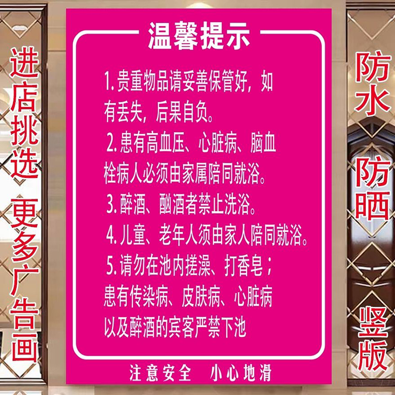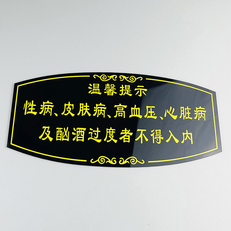 亚克力标识牌游泳馆洗浴中心警示牌性病皮肤病高血压心脏病酗酒过度者