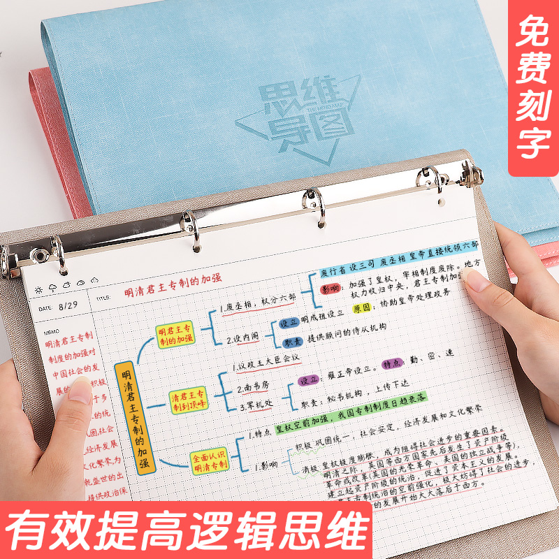思维导图笔记本活页强迫症带模版加厚A4大号康奈尔可拆卸记事本六孔