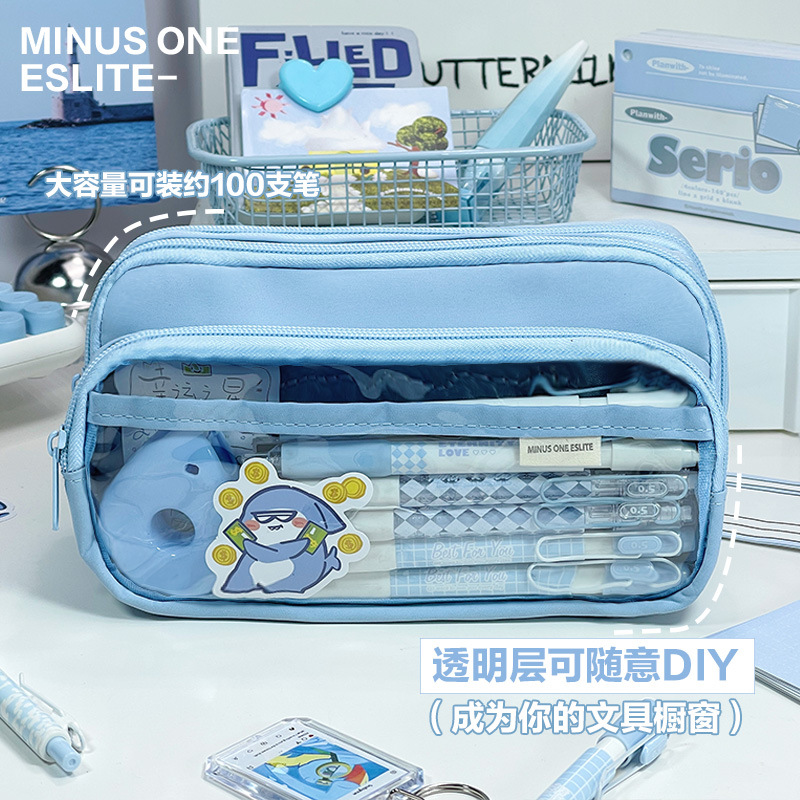 二次元痛笔袋高颜值大容量有透明痛层diy小食量吧唧痛包笔袋文具