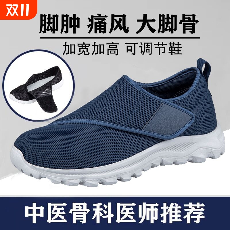 脚肿老人鞋春秋爸爸鞋加宽糖尿病脚拇指外翻专用鞋痛风偏瘫鞋网面