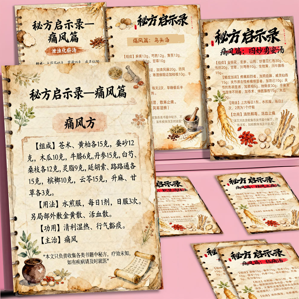 中医秘方启示录痛风基础活血化瘀药材搭配功效作用科普笔记贴画