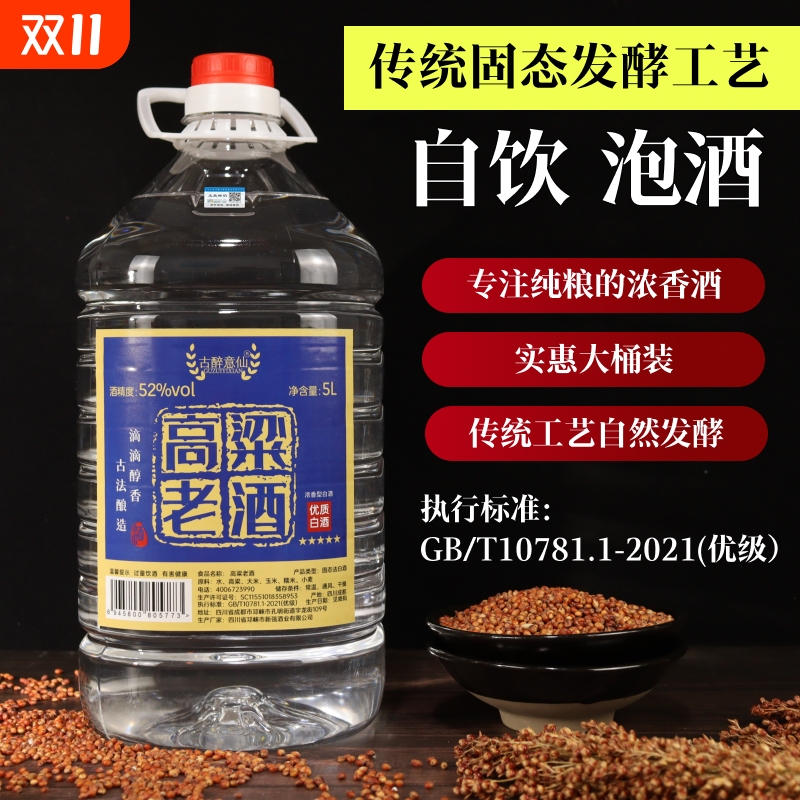 高粱老酒52度60度厂家直销高品质纯粮酒大桶5L浓香型桶装白酒粮