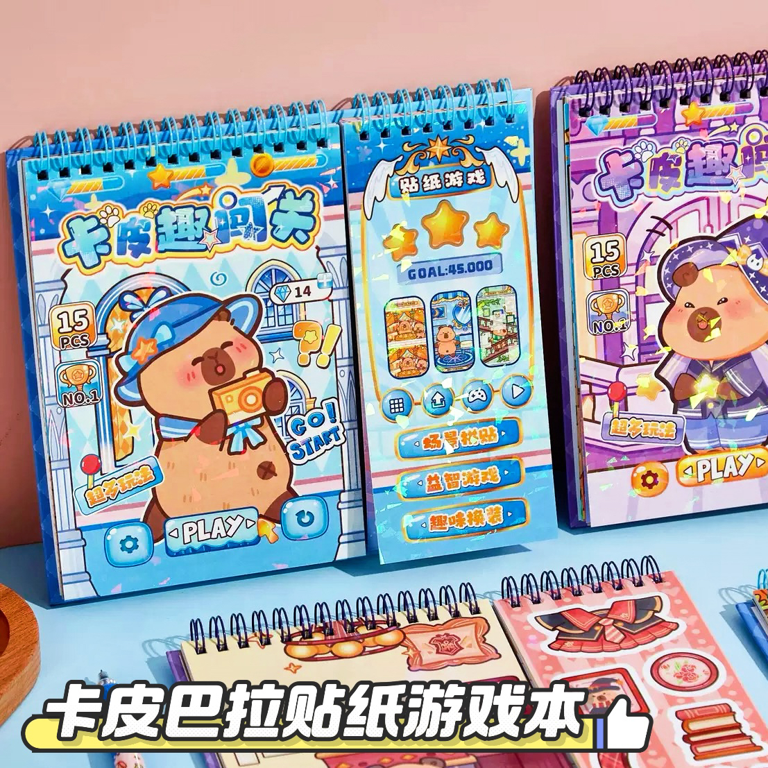 卡皮巴拉游戏贴纸本趣味闯关本学生儿童卡通diy益智拼贴减压贴画