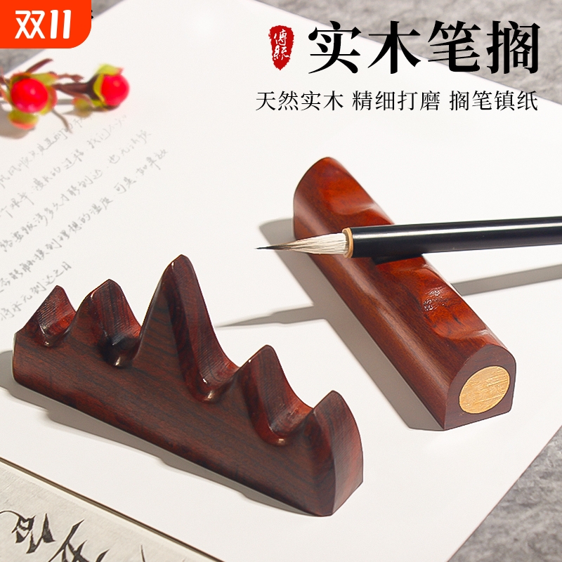 实木毛笔笔搁笔架挂架创意中国风复古简约红木五指山文房四宝摆件笔托