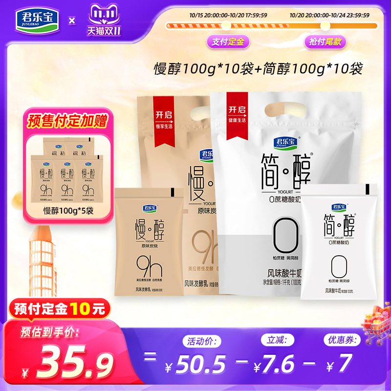 【双11抢先购】君乐宝慢醇炭烧风味酸牛奶100*10袋+简醇10