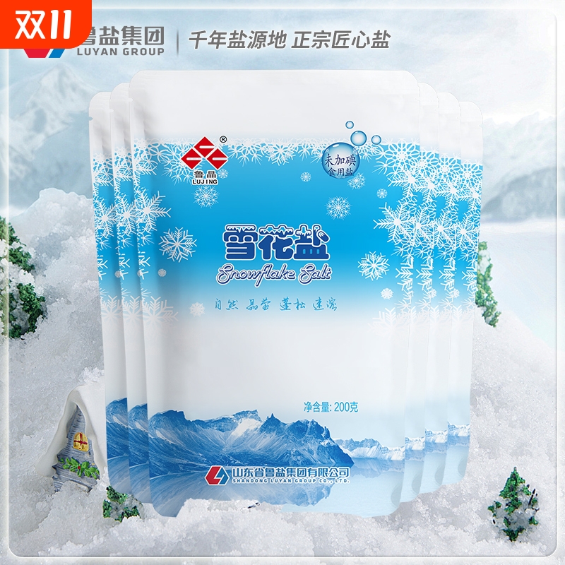 鲁晶雪花盐200G*50未加碘海盐食用盐烘焙牛排家用整箱无碘