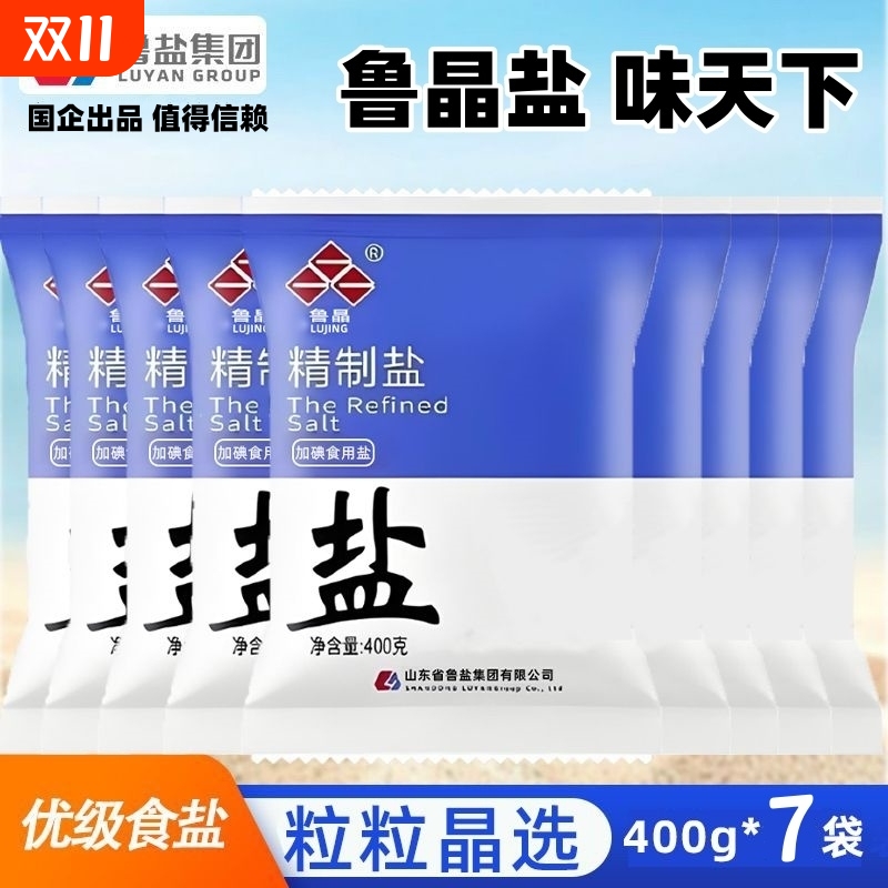 鲁晶食用海盐未加碘400G*7清仓大促无碘精制标准海水盐业
