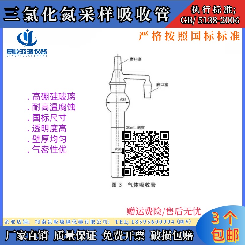 三氯化氮测定装置GB/5138 采样盐酸分离含量测定气体吸收管2