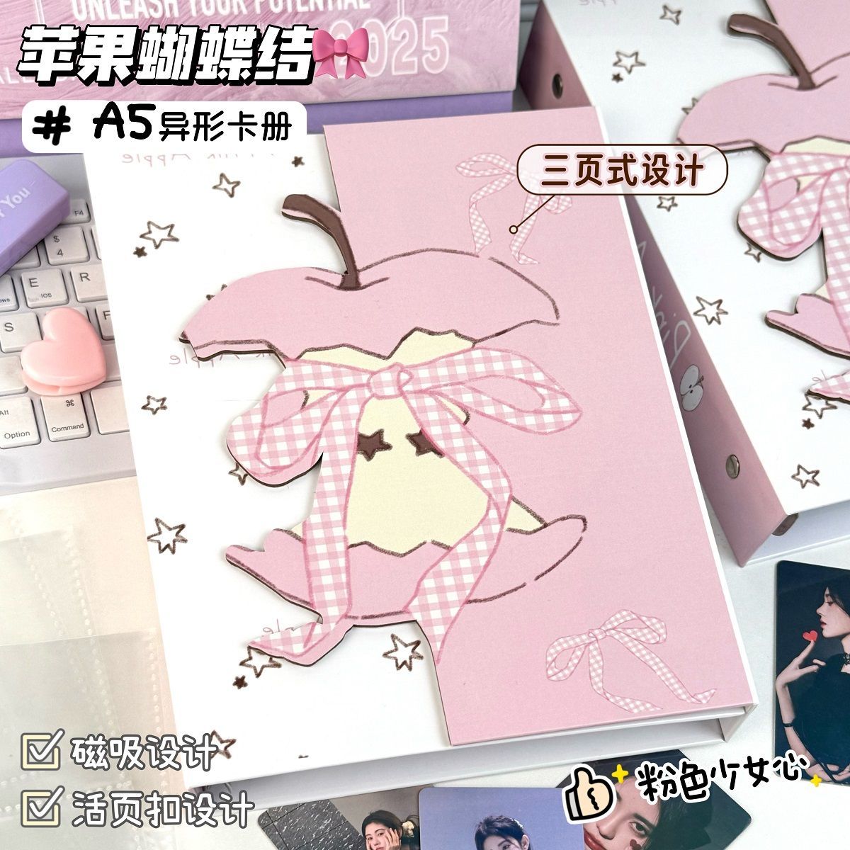 新款蝴蝶结苹果异形A5卡册ins高颜值四宫格加厚硬壳活页收纳相册