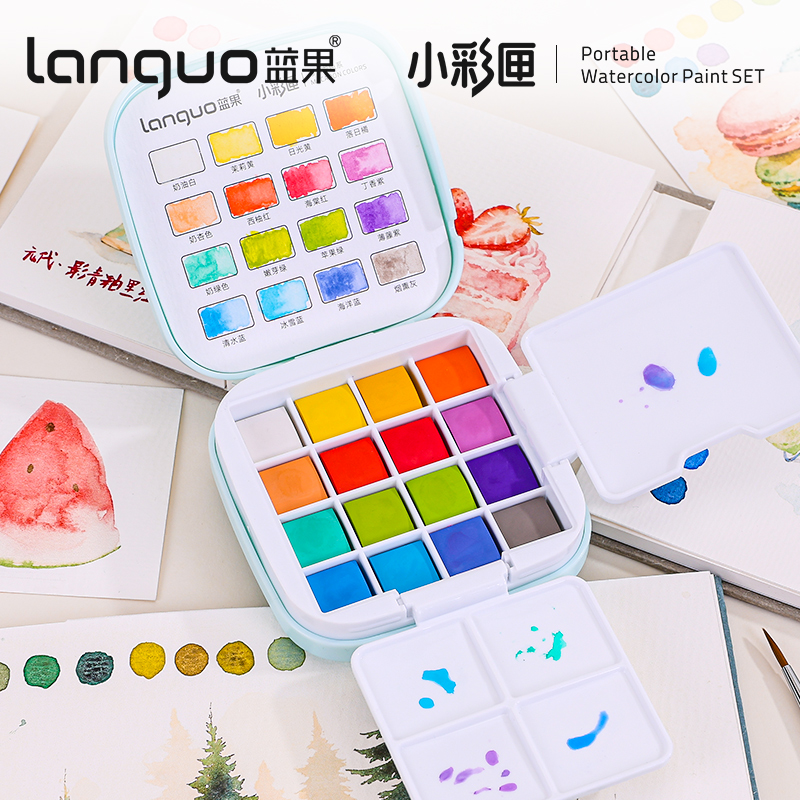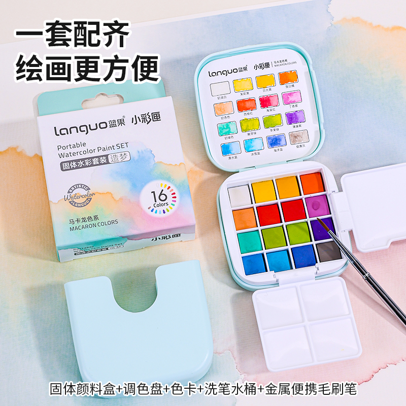 蓝果固体水彩颜料套装16色初学者写生学生美术生绘画专用便携式水粉