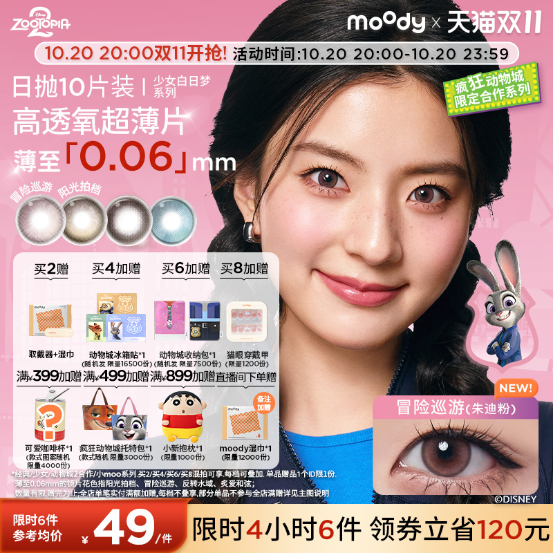 [双11加购]moody美瞳日抛疯狂动物城2冒险巡游彩色隐形眼镜