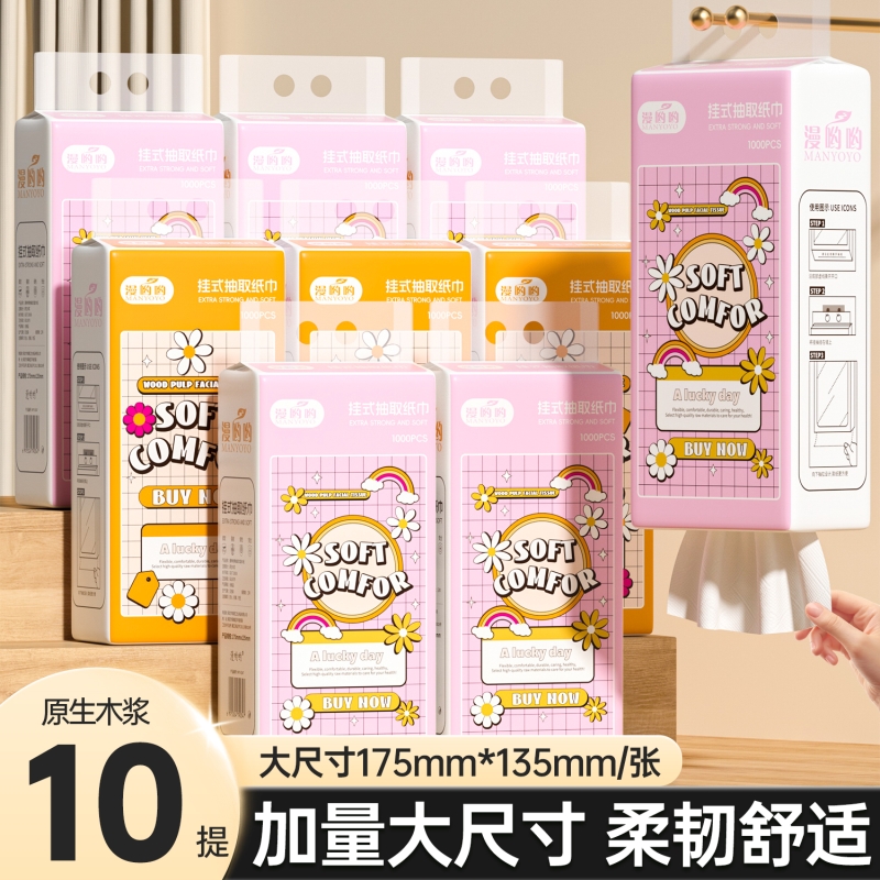 10大提悬挂式抽纸卫生纸4层加厚厨房客厅挂着抽更方便湿水不掉屑