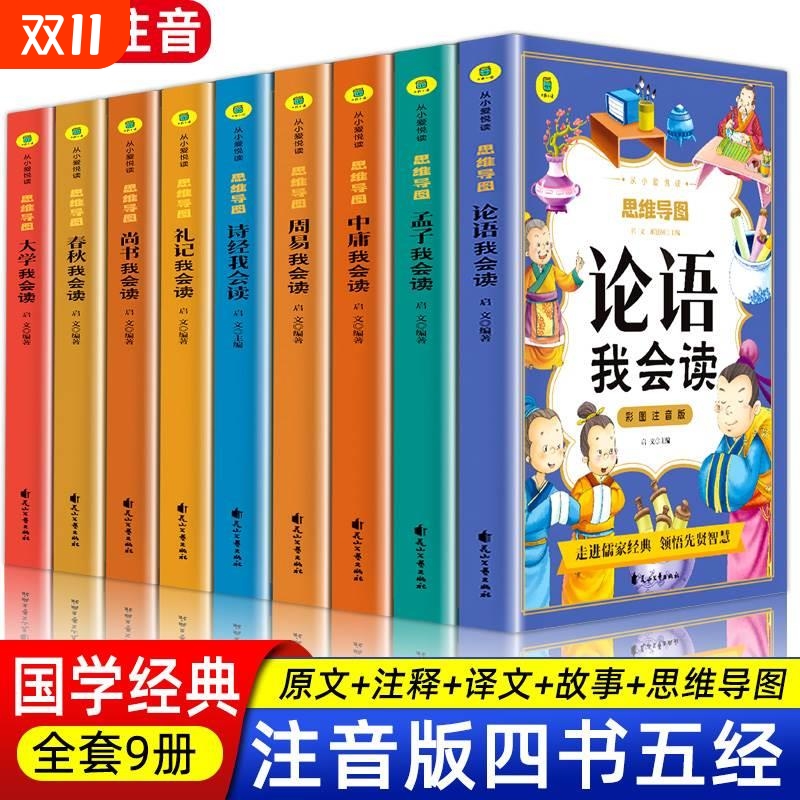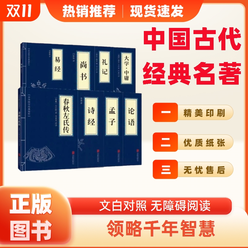 全套8册春秋左氏传易经礼记尚书诗经孟子论语大学中庸经典读本文白对