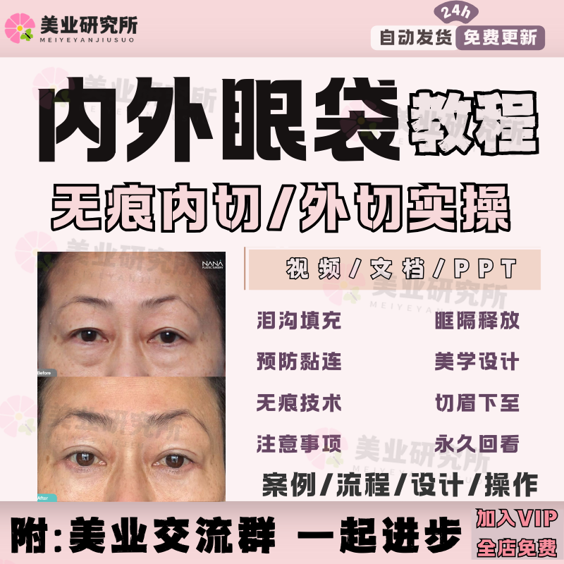 眼综合课程视频教程无痕祛眼袋切提下至眉开内外眼角重睑教学全套
