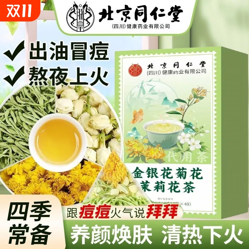 北京同仁堂金银花菊花茶去火清热解三花茶祛下痘养肝护肝养生茶
