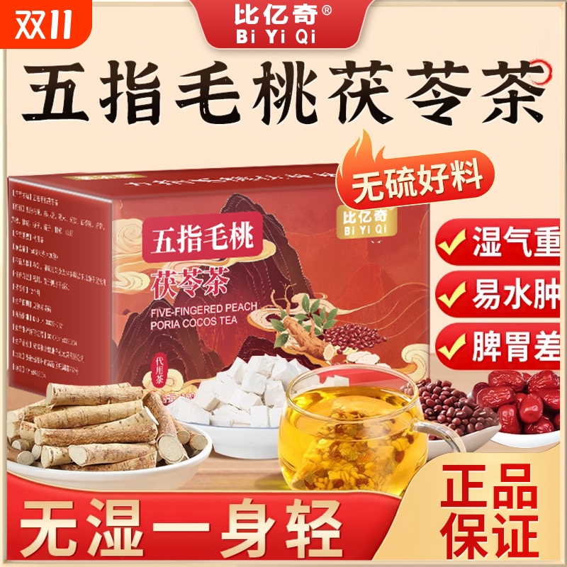 五指毛桃茯苓茶赤小豆薏仁炒熟去排湿养气健脾除寒气祛毒湿养生茶