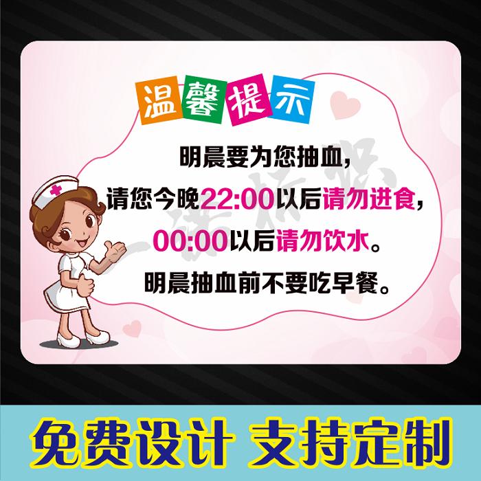 医院温馨提示抽血前注意事项禁食禁饮标识贴抽血后注意事项警示贴
