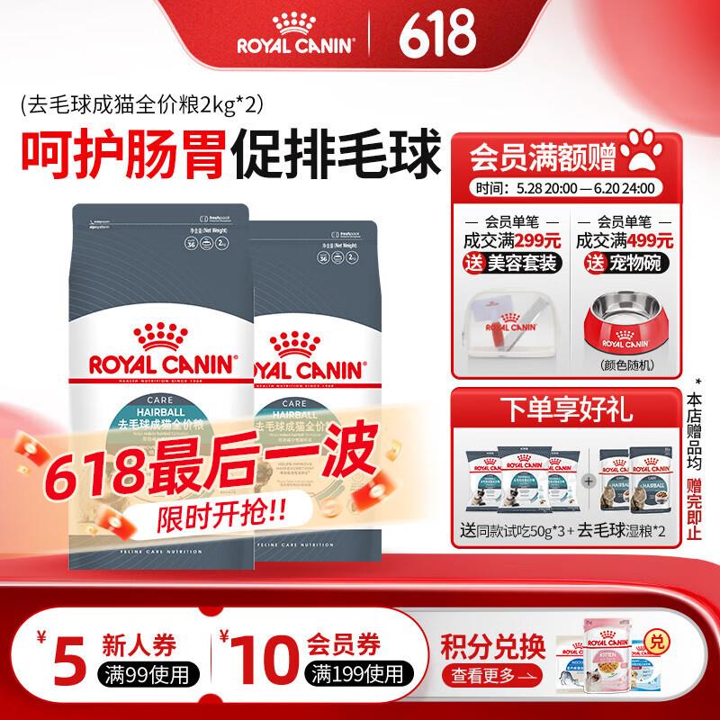 皇家猫粮成猫去毛球全价通用粮呵护肠道猫咪排毛专用猫咪零食主粮