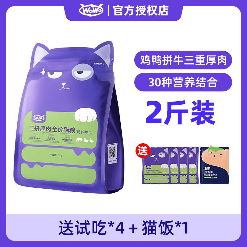 WOWO猫粮喔喔鸡鸭拼牛三拼肉全价猫粮低敏无谷成猫幼猫通用全期猫