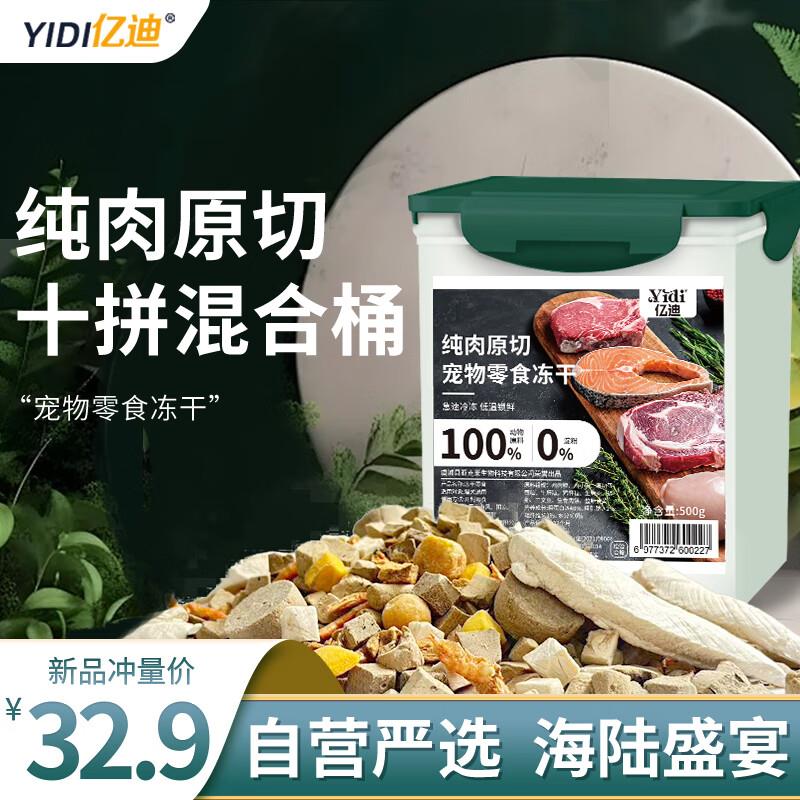 亿迪 冻干猫零食成猫幼猫狗通用鸡肉粒生骨肉鸡胸肉十拼混合桶主
