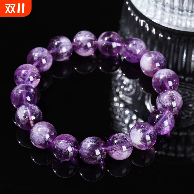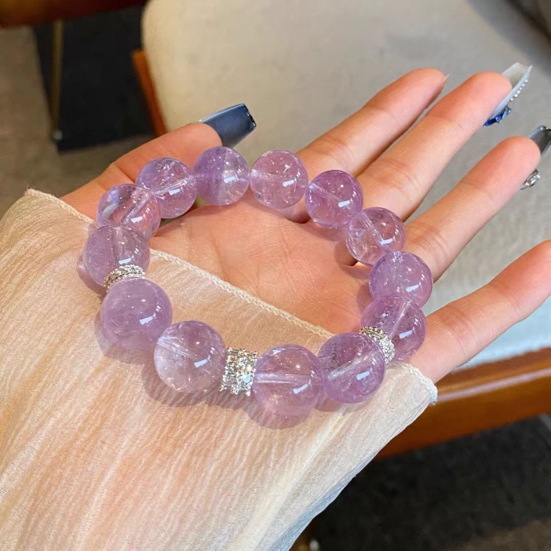 爆仿水晶手链冰种紫锂辉手链高颜值百搭手串饰品简约情侣礼物串珠
