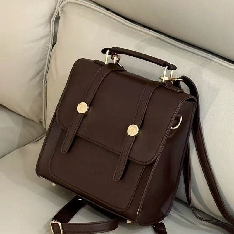 小众美式复古搭扣双肩包斜挎牛津包英伦通勤学生三种背法书包女
