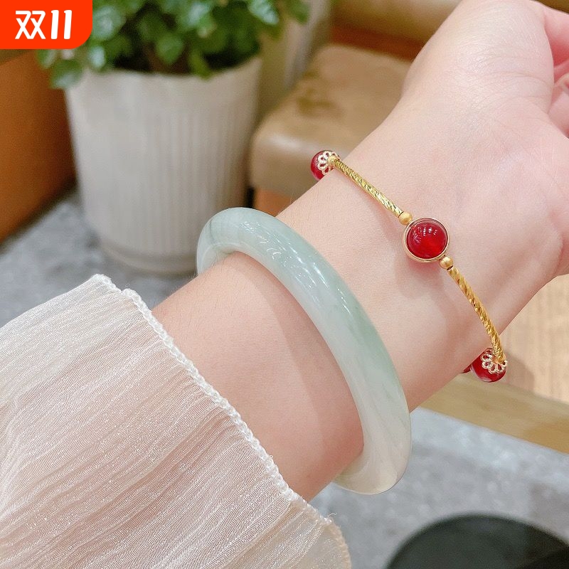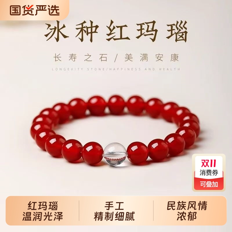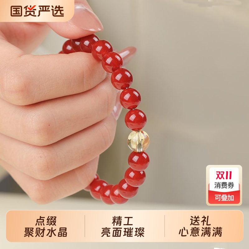 冰种红玛瑙手链男女情侣款黄水晶转运珠手串国风百搭生日女友礼物