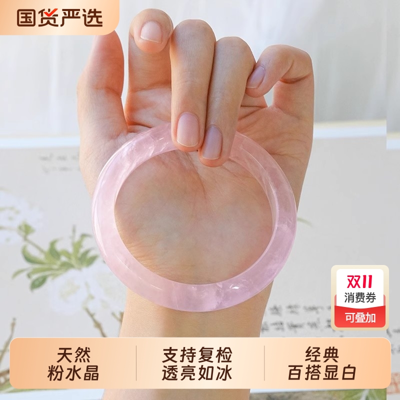 天然水晶手镯女生显白高冰粉晶玉镯粉水晶送闺蜜女友百搭冰种镯子