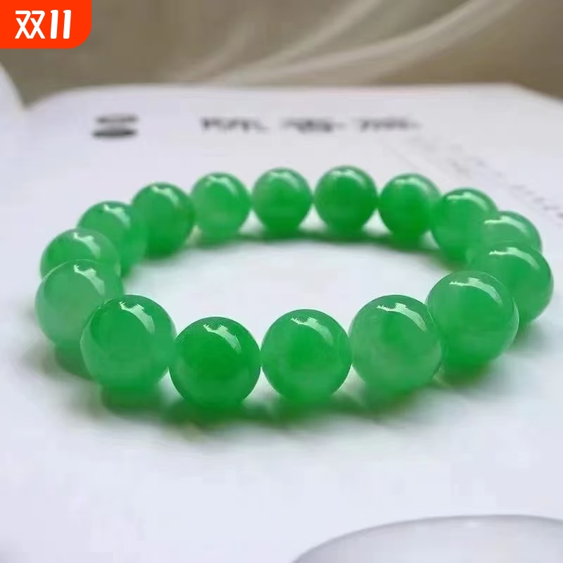 收藏级精品仿冰糯种翡翠色帝王绿大气圆珠手串时尚百搭男女同款