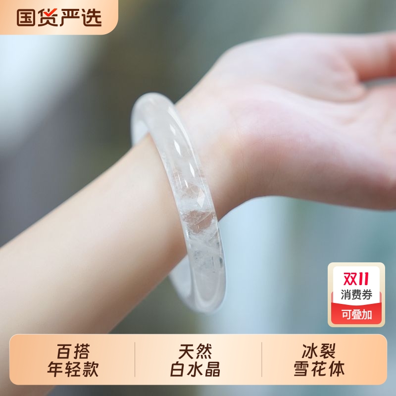 高冰种天然白水晶手镯女款冰透白月光雪花晶体水晶女镯百搭礼物