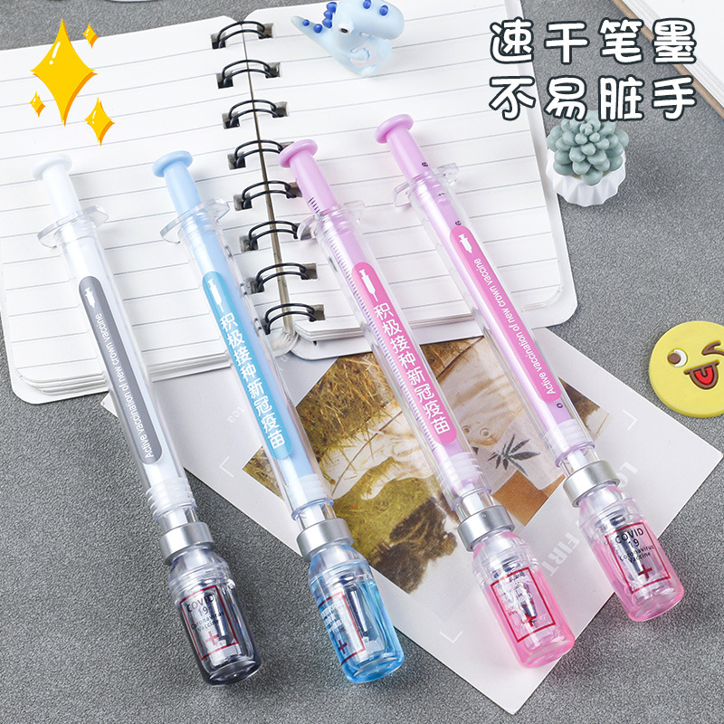 积极接种疫苗笔0.38mm中性笔水笔黑笔创意仿真针筒造型学生趣味