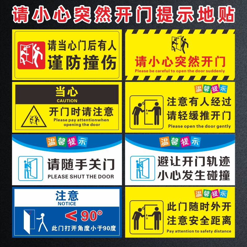 请小心突然开门标识开门提示地贴扇形安全地贴生产车间标示当心开门温