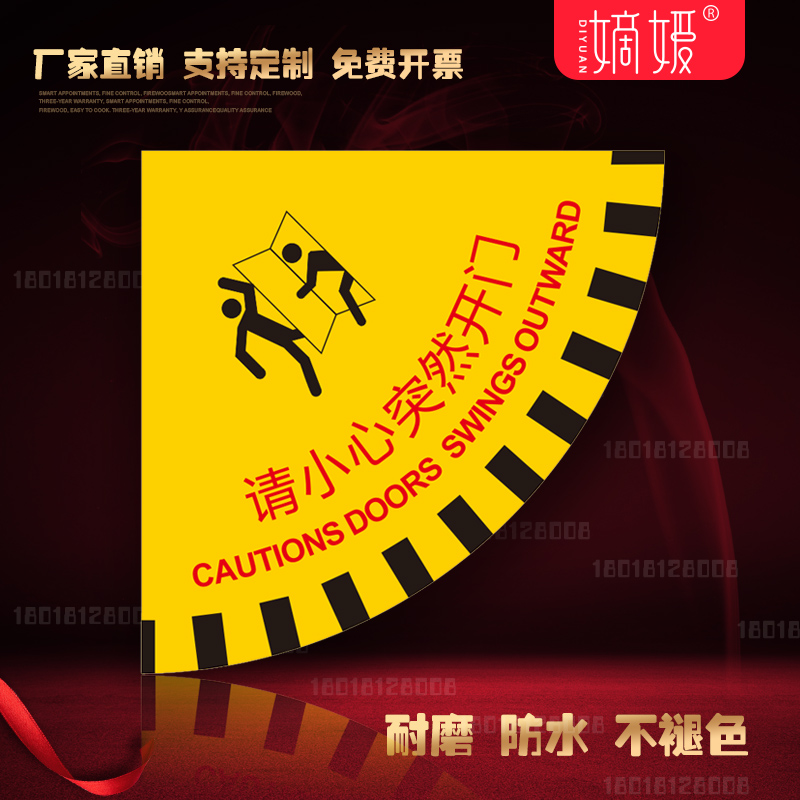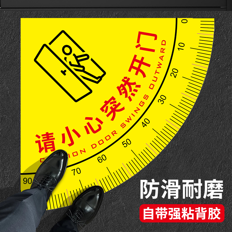 请小心突然开门温馨提示地贴扇形工厂生产车间地面安全提醒出入当心开