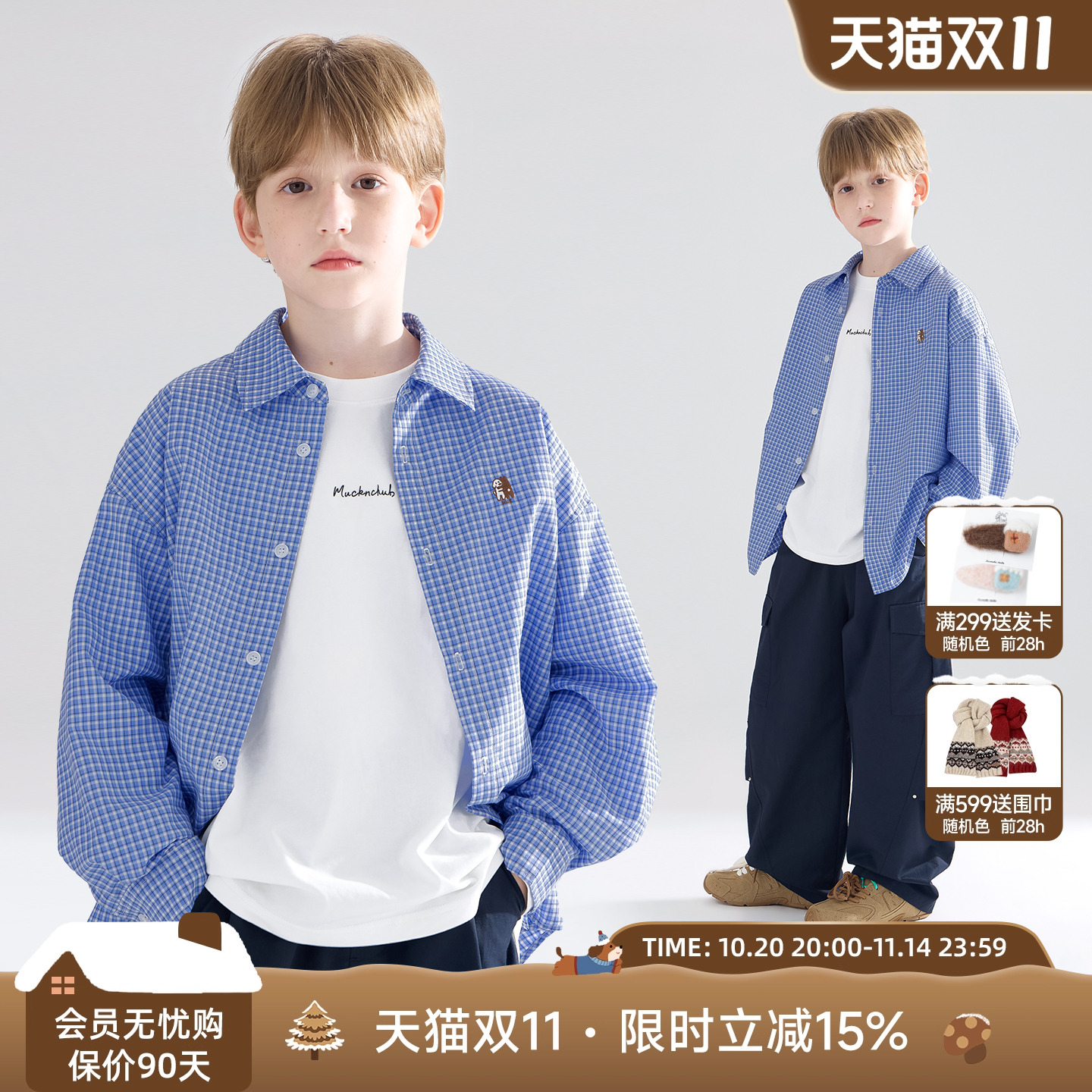 MUCMUKN童装 新款拉夫学院风衬衣绣花百搭蓝格子衬衫外套男女