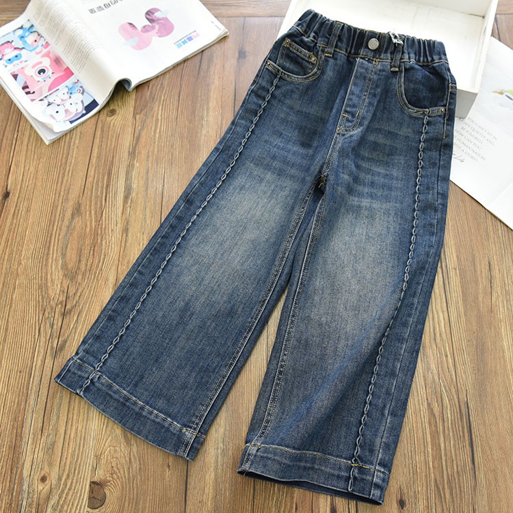 女童洋气时髦侧拼大方直筒长裤 中大童洋气休闲牛仔阔腿裤25秋