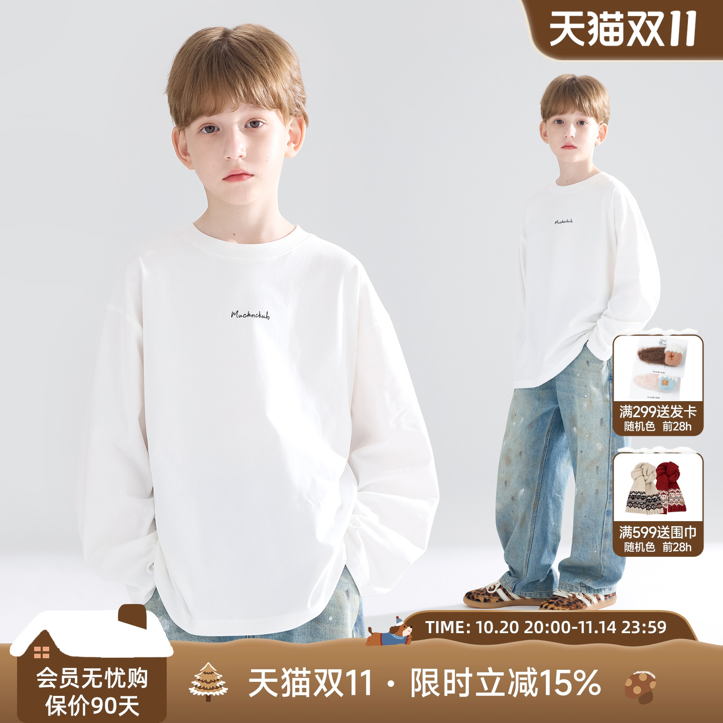 MUCMUKN童装秋冬新款全棉磨毛打底衫抑菌百搭上衣白T恤长袖男