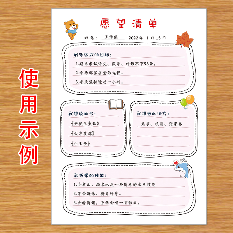 目标愿望清单小学生初中生学习读书旅游生活技能健身等目标制定自