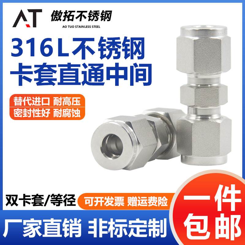 316不锈钢卡套直通中间接头研磨304二通英制等径变径气源仪表铜