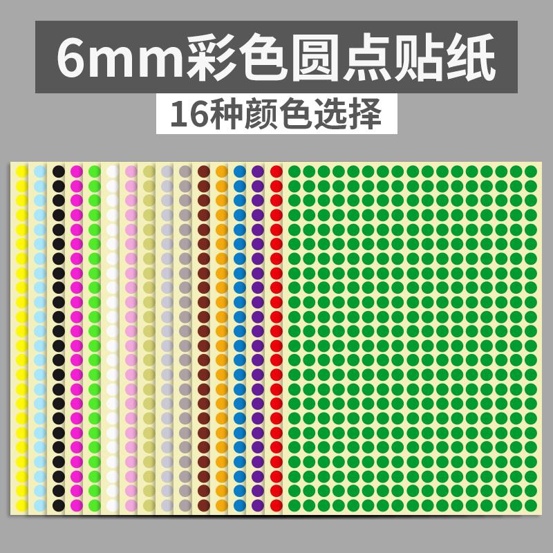 标签贴纸自粘6mm彩色圆形圆点不干胶标签白色贴纸颜色标贴口取纸分