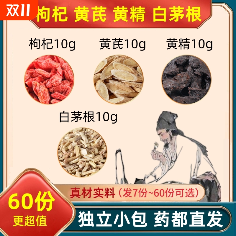 枸杞黄芪黄精白茅根各10克g组合装泡水喝的功效与作用苟杞子茶包