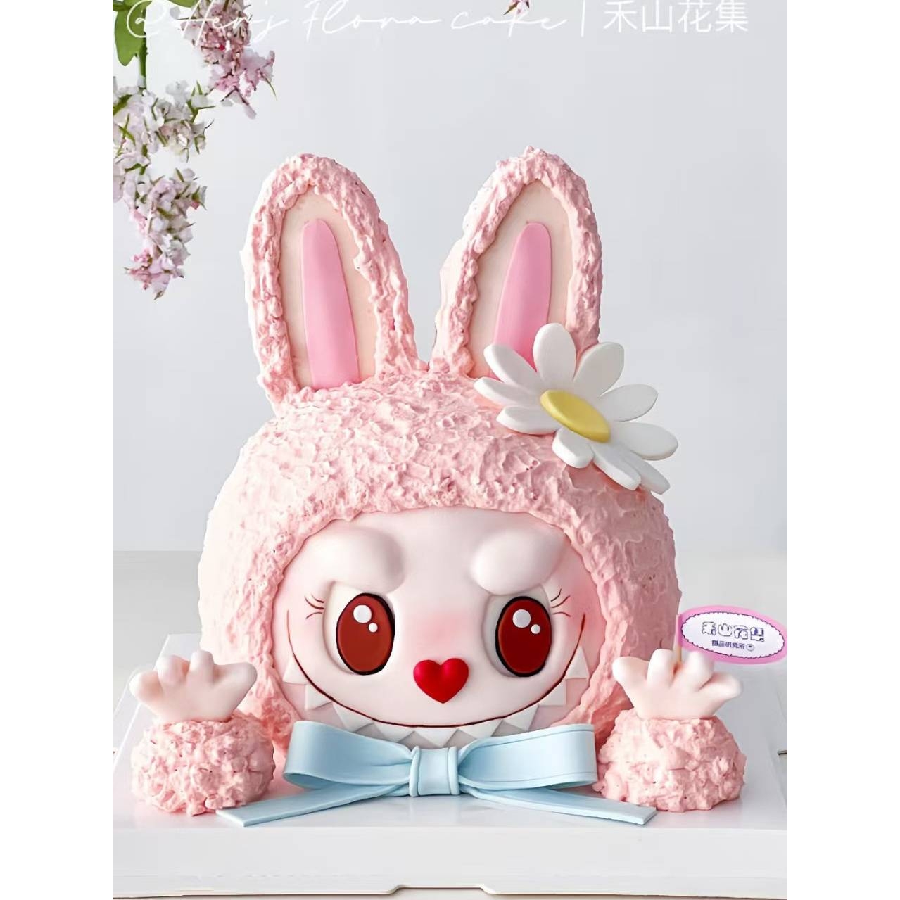 网红同款labubu拉布布翻糖巧克力蛋糕装饰嘟嘟脸烘焙甜品食用插
