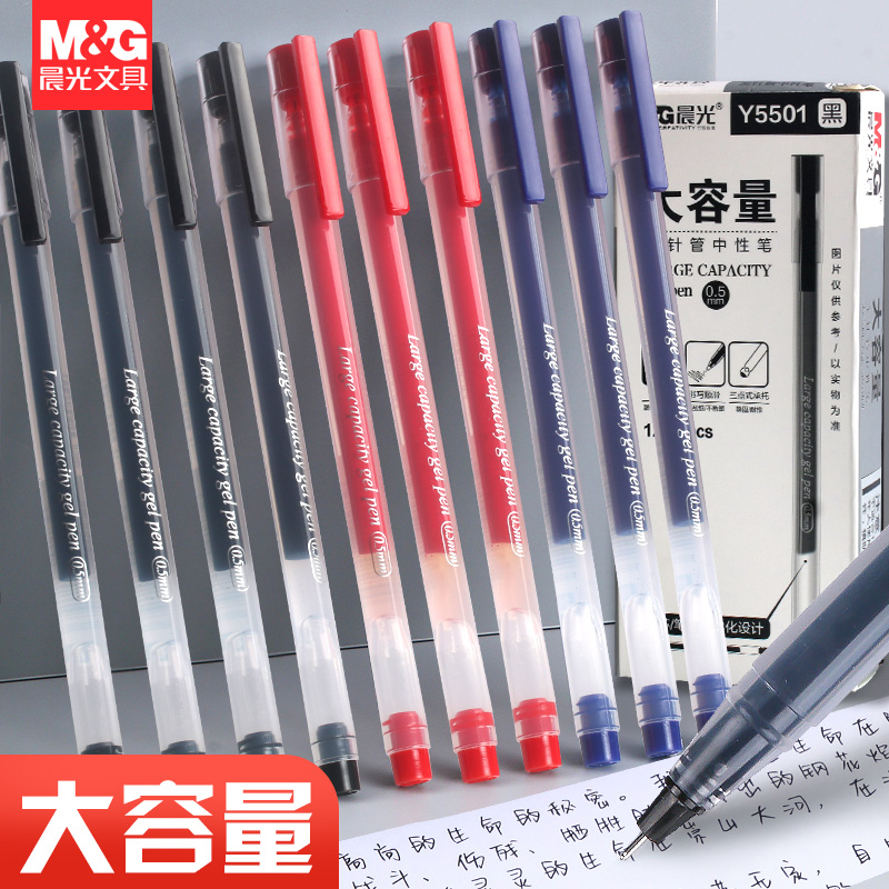 晨光大容量中性笔巨能写速干学生写作业神器水笔红笔以一敌五一体式全