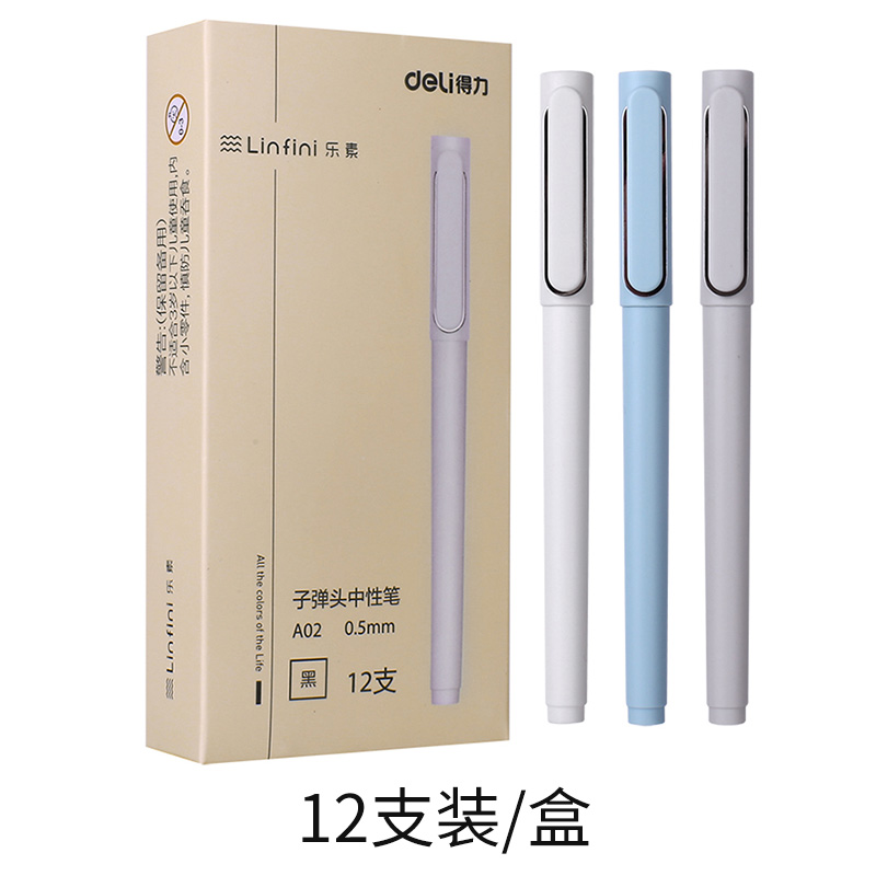 得力盖帽办公学生塑料12支简约